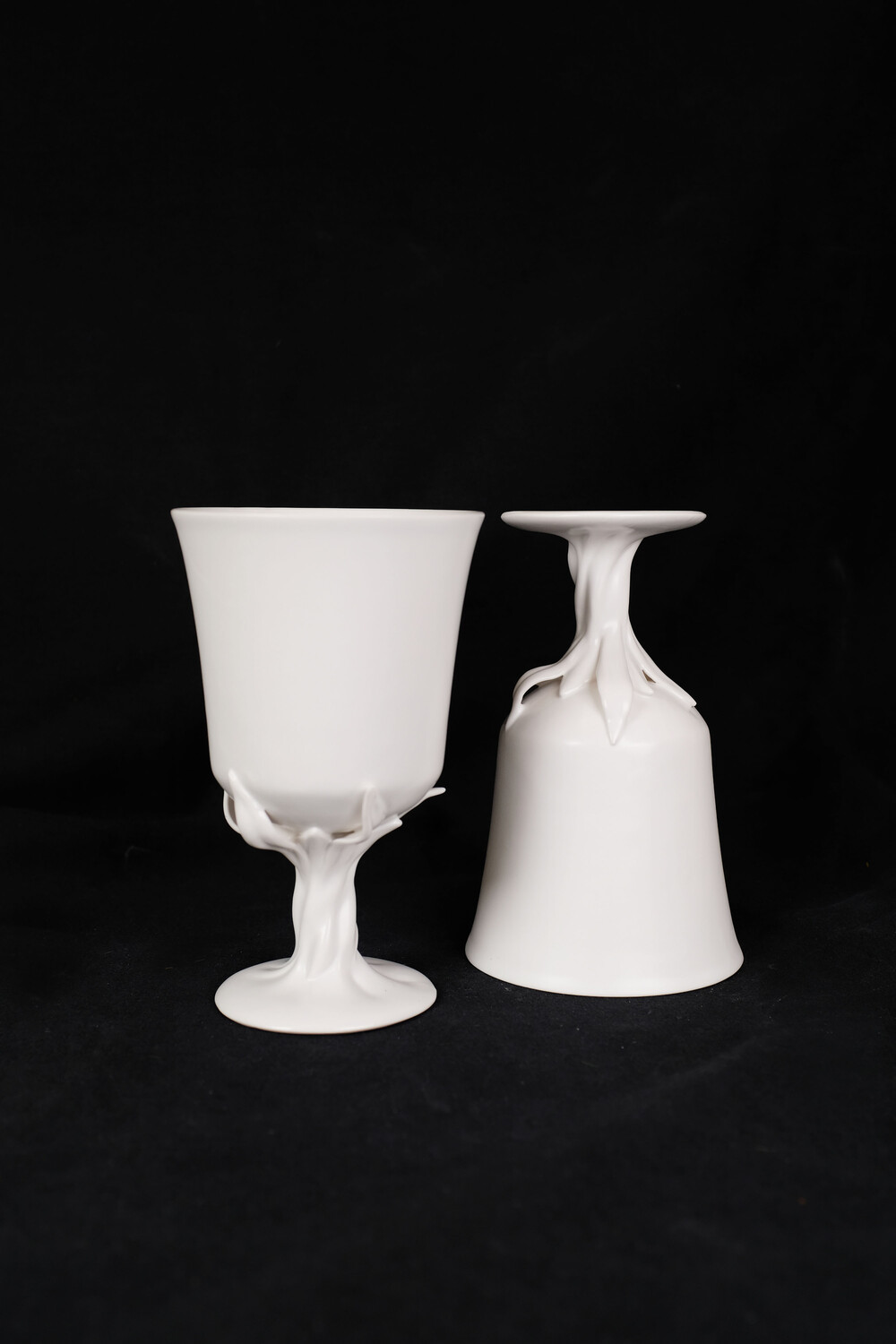 잔을 받치고 있는 잎이 하나하나 붙여지기 때문에 각각의 모양을 지니며,