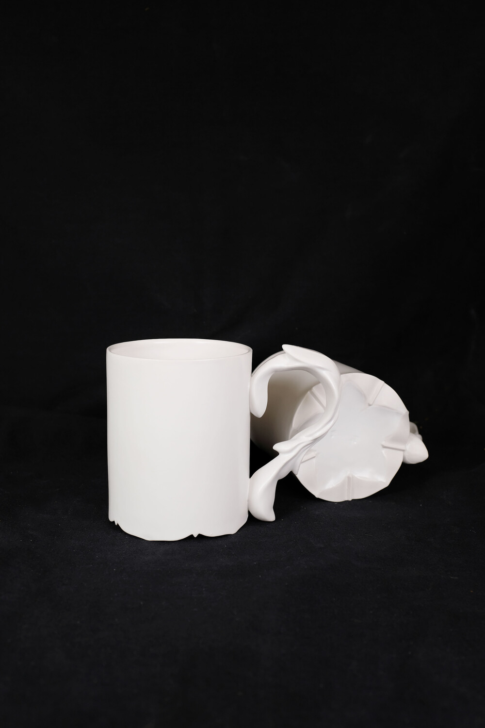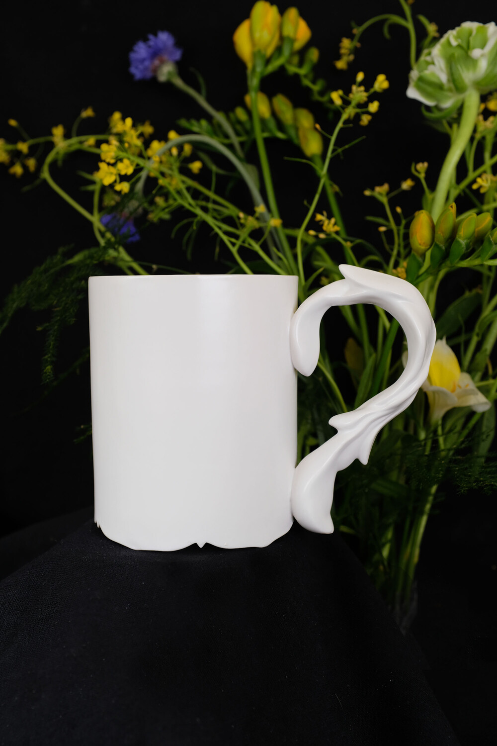 손잡이에는 줄기와 잎을 담은 한 송이의 머그컵입니다.