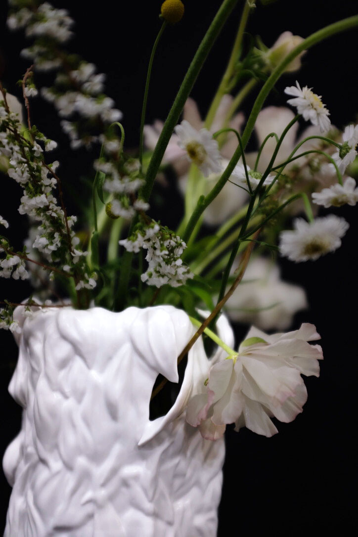 꽃잎을 하나하나 빚은 후 얹어 꽃의 흐드러짐을 표현하였습니다.